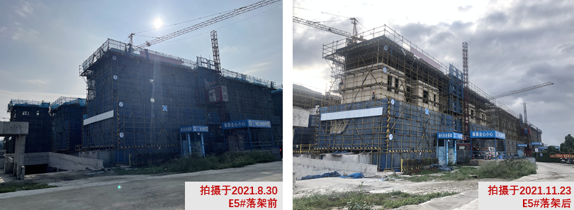 E地块施工工作面总计完成35000平方米,现全部合院部分及8栋类独栋已完成结构封顶。