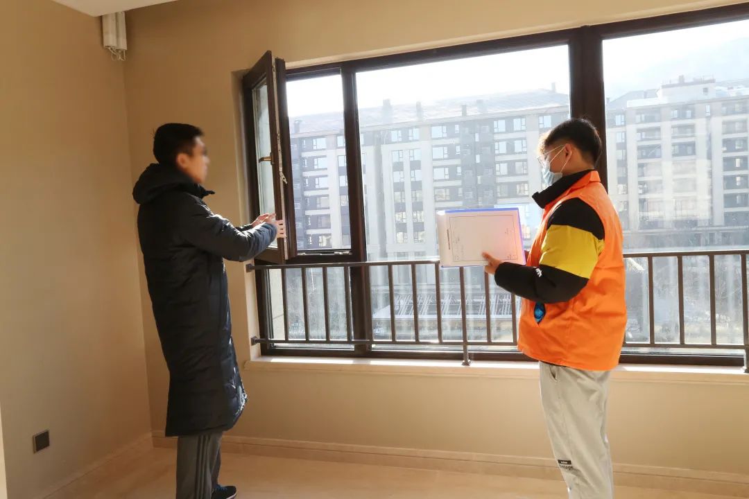 在完成相关手续后,陪同业主对房屋的窗户、墙面的施工品质,以及插座、门锁、电表的质量和安全进行了再次全面的检验,发现问题及时修整,给业主给予一份满意的答卷。