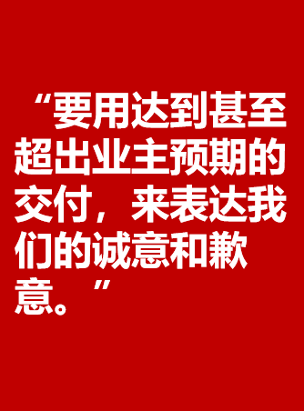 关于交付和品质,去年以来,黄其森董事长在多个场合提出了方向和要求。今天,我们摘取了其中的4句,向消费者传递泰禾的态度,展示泰禾的决心。