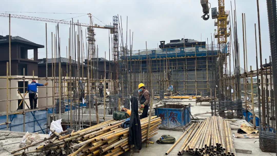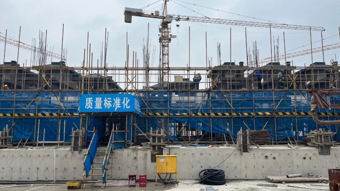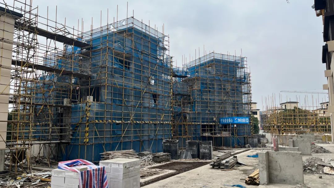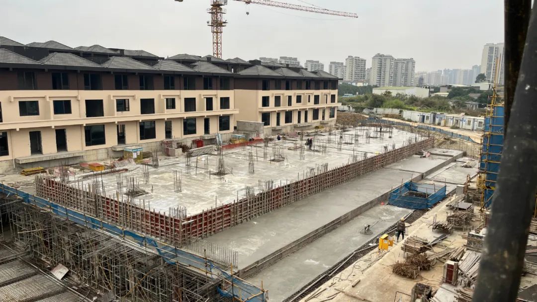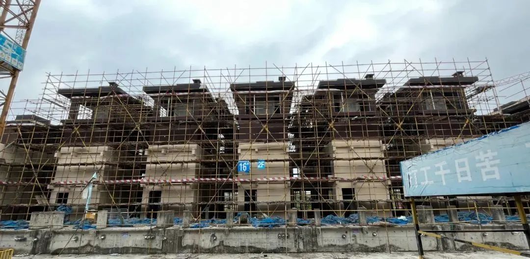 E地块土方累计开挖2.3万立方,完成地下室底板、顶板结构1.4万平方,楼栋结构封顶2500平方,共计21栋楼体完成落架。