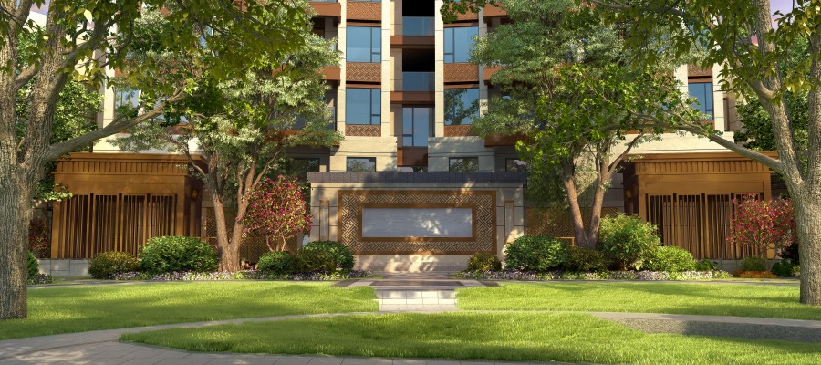 继上海院子之后,2017年央企信达与文化泰禾再度合作,结合深圳当地客户需求,沿袭院子深厚内蕴与品质精粹,赋新传统,力造全新泰禾“府系”产品,区别院子系定位的“王侯之门”,大院系定位的“冠冕之门”,府系定位为“鼎贵之门”,对位显赫之尊,全面考究人居精神与产品细节的融合,推出国风城市高层——项目总建筑面积23万㎡,产品以89-140㎡的奢适三-四房为主。建筑上萃取中国传统礼制,打造传统府院文化体验。整个园林,继承泰禾新中式造园精髓,金尊府是深圳首个真正以中国皇家园林为样本打造的中式园林.以小见大,通过高山流水、山石错落、花木掩映、曲径通幽等造园手法,打造了一个集观赏、游玩、居住功能为一体的人间仙境,填补深圳中式大美园林空白。同时项目对标国际亚洲豪宅“院子系”,引进泰禾5A“金钥匙”贴身管家服务,为城市缔造服务一生、极富意蕴的精神居所。
