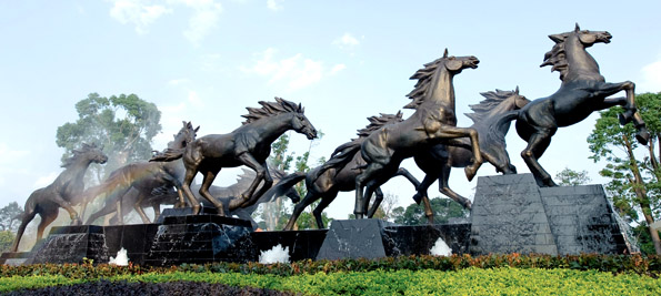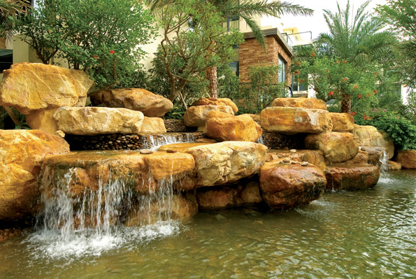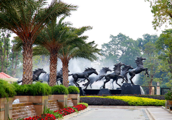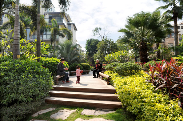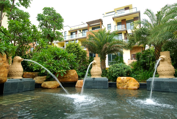 自然叠水室外泳池,搭配浓郁的热带植物、景观喷泉,一处景致诠释一袭情趣。局部品味,它们拥有各自独立的风格;整体观览,却又是一部和谐的交响曲。